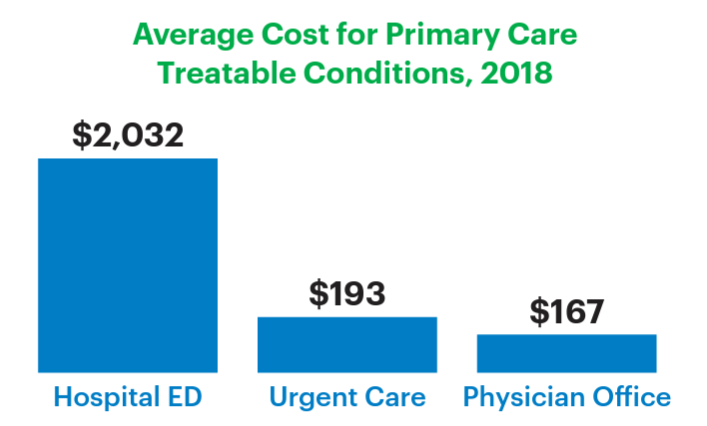 The ER is a place to go for a gunshot wound or a heart attack. They are not set up to handle routine diagnosis, normal care, and chronic conditions. One study by United Healthcare Group estimates that over half of ER visits are "avoidable." In round numbers, this creates an opportunity to save $135B in annual costs by addressing these patients more effectively.