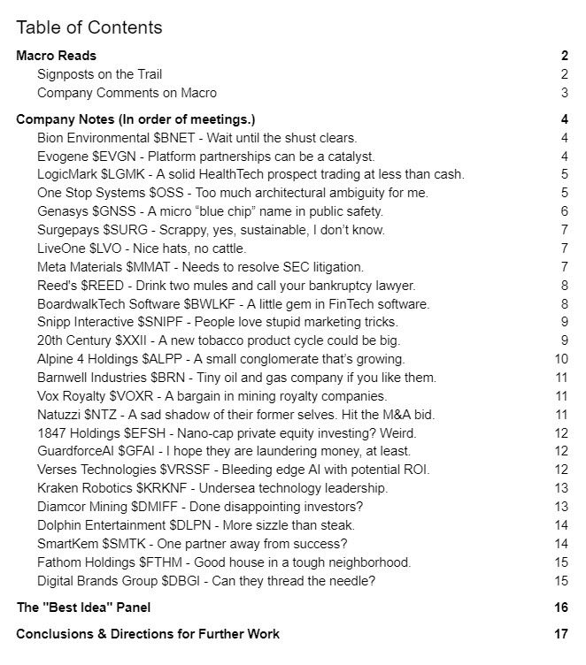 The document also covers some macro reads, our notes on individual companies, and a section on the “single best ideas” shared by some more experienced micro-cap investors.