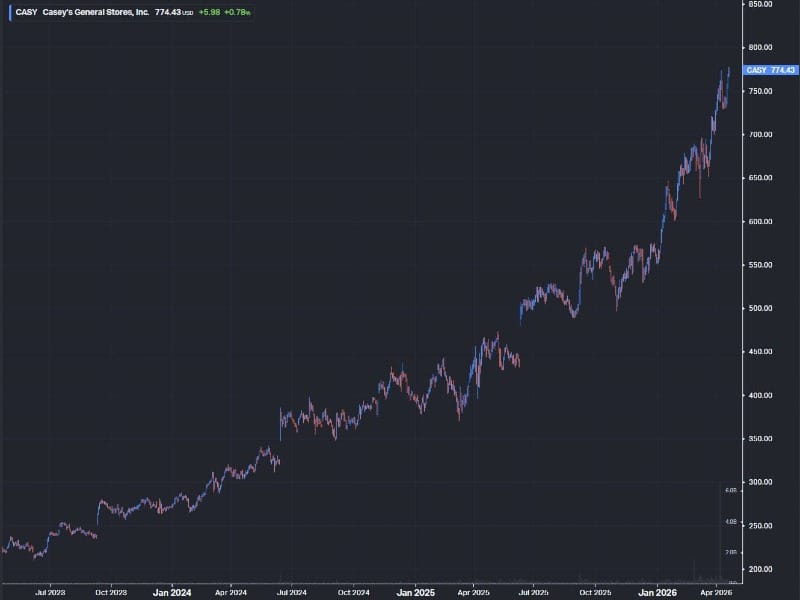 Convenience stores have had a great run in the last few years. The chart for Casey's General Store $CASY tells the story. Murphy USA $MUSA has had a similar monster run. These convenience chains have been multi-baggers.